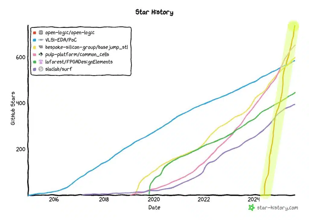Open Logic gained traction quickly. With over 700 GitHub stars today it is among the most popular open-source FPGA libraries